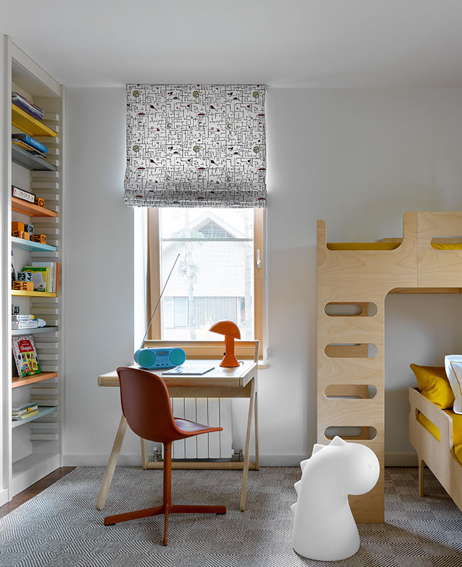 Детская. Кровати, стол Rafa-kids. Шторы Pierre Frey. Ковер изготовлен специально для этой комнаты.