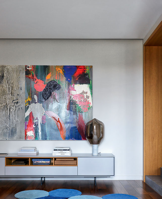 Главная спальня. На комоде Punt светильник Established & Sons, диз. братьев Буруллек. На стене работа Игоря Михайленко.