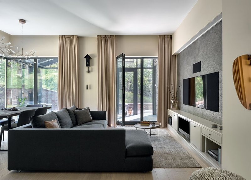 Недвижимость клиент выбирал вместе с архитектором. «Мы посмотрели немало новостроек, но когда я увидела эту квартиру в поселке «Парк Рублево» на первом этаже, сразу поняла: вот то, что нужно. Здесь ощущаешь полное слияние с природой — таких мест в Москве мало».