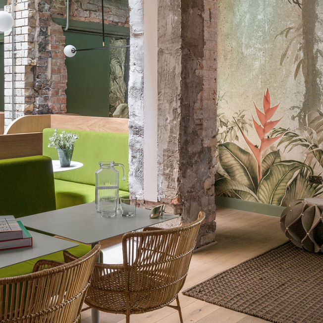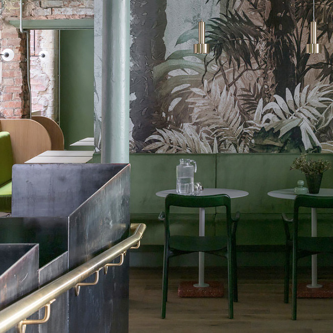 Богатую фактуру исторических зданий XIX века решили обязательно сохранить, но избавиться от следов изменений, которые произошли с постройками в 1980-х годах. Создавая «новый визуальный язык, соразмерный новой жизни и задачам интерьера», особое внимание уделили тому, чтобы старые и новые элементы гармонично вступали в диалог.