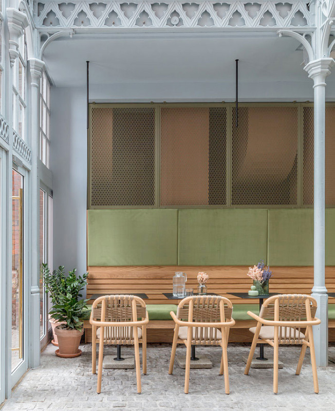 В ноябре 2018 года в Манчестере открылся отель на 160 номеров Whitworth Locke. Его интерьер оформил модный дуэт Мэтью Грживински и Амадор Понс, бюро Grzywinski Pons, которые уже работали над отелями сети Locke в Лондоне и Эдинбурге. Новый отель призван стать привлекательным и комфортным местом, дизайнерским «вторым домом» для путешественников. Номера оборудованы полностью укомплектованными кухнями, чтобы с удобством остановиться как на короткий, так и на длительный срок. Whitworth Locke занимает три здания, построенных в разное время: Central House, Dominion House и Johnson House. Раньше в них располагались текстильные склады и выставочный зал. По словам дизайнеров, эта «фабричная» эстетика им близка — напоминает об их ранних проектах и архитектуре родного Нью-Йорка. Богатую фактуру исторических зданий XIX века решили обязательно сохранить, но избавиться от следов изменений, которые произошли с постройками в 1980-х годах. Создавая «новый визуальный язык, соразмерный новой жизни и задачам интерьера», особое внимание уделили тому, чтобы старые и новые элементы гармонично вступали в диалог. Сердце отеля — застекленный просторный атриум. Дизайнеры убрали лишние перегородки, чтобы создать воздушное, светлое пространство. Стены, потолок и элементы конструкции выкрасили в оттенок неба над Манчестером, посчитав, что он оптимально сочетается с палитрой интерьера и цветом фасадов. Пол частично выложен гранитной брусчаткой, которая связывает внутреннее и внешнее пространство. Grzywinski Pons спроектировали для отеля большую часть мебели и освещение. Выбрали приятные на ощупь материалы и теплую палитру. По словам дизайнеров, цветовая гамма во многом навеяна исследованиям, посвященным коммерческим связям, исторически связывавшим Манчестер с отдаленными и более теплыми и яркими уголками земного шара. К услугам гостей бар The Conservatory, предлагающий разнообразные коктейли, музыку и мероприятия. FDN Whitworth — кофейня третьей волны, где можно не только подают кофе, но и проводят ночные кинопоказы. При отеле есть собственный кроссфит-зал The Locker Room, оборудованный всем необходимым, а гости могут посетить бесплатные занятия, включая йогу и медитацию. «Нам нравится думать, что мы достаточно уважительно отнеслись к наследию и красоте существующих зданий, но в проекте есть откровенно новый и смелый язык. Эта заметная эволюция отражает то, как Манчестер продолжает расти и меняться».