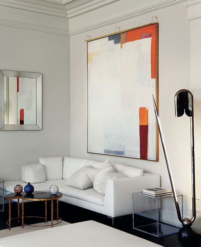 Белая мебель нейтральных форм — отличный компаньон для абстрактной живописи и современной скульптуры.