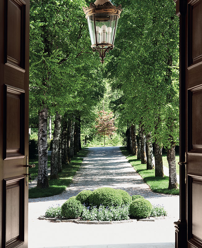 Парадный вход. Здание в традициях австрийской неоклассики построено в 1960-е годы. Робер Кутюрье декорировал классическую виллу под Зальцбургом. Мультимиллионер Герхард Андлингер был рад экспериментам. Как началась карьера декоратора со звучной фамилией Кутюрье? В 1987 году 32-летнего Робера пригласил к себе миллиардер сэр Джеймс Голдсмит и дал ему, как рассказывает декоратор, «самый крупный единовременный частный заказ современности»: в поместье на берегу тихоокеанского побережья Мексики (20 000 акров) «с нуля» декорировать дворец в 5600 кв. м. А также прилегающие виллы детей, бывших жен и любовниц финансиста плюс гостевые павильоны. Далее последовал его личный Boeing 757 («этот ковер-самолет с мотором»), двойной таунхаус на Манхэттене и историческое шато во Франции. Мегапроект определил круг будущих заказчиков Кутюрье. Два шезлонга Ле Корбюзье LC4 в шкуре пони, 1928, — ключевые элементы симметричной композиции в гостиной. Слева торшер Fortuny, Pallucco Italia: модель 1907 г. Как полагает сам декоратор, клиентов привлекает «его понимание классики, которому он обучился в школе Камондо в родном Париже». Кутюрье не жалует минимализм: говорит, что в нем не хватает истории. Хотя этим направлением тоже вполне владеет: «Я тут делал один очень простой дом в Гринвич-Виллидже — невероятно, но он получился чудовищно дорогим! Простота не прощает ляпов». Робер сетует, что вкусы американских миллионеров предсказуемы. «Все в этой стране, кто делает больше 10 миллионов в год, хотят бежевую гамму и современное искусство на белых стенах». Не самое плохое клише, надо заметить. «Не люблю минимализм. То есть сам по себе он великолепен, но в нем не хватает истории». Биллиардная в эркере. Шторы цвета лососины сочетаются с синим сукном, на которое заменили традиционное зеленое. Бежевая гамма обогащена природными фактурами на стенах. Декор хорош только тогда, когда уважает архитектуру. А также вкусы заказчика. Герхард Андлингер в интерьерных предпочтениях оказался раскрепощеннее своих коллег. Глава крупнейшей инвестиционной компании — также постоянный клиент Робера Кутюрье. Например, тот делал его пентхаус в отеле Plaza, который потом был продан русскому олигарху Андрею Вавилову (сделка живо обсуждалась в нью-йоркской прессе: «37 миллионов — как упали цены после кризиса!»). Андлингер живет на Манхэттене, а отдыхать ездит на родину в Австрию. Под Зальцбургом на одном из прекрасных озер, он купил виллу, выстроенную в духе австрийской неоклассики. 80-летний Андлингер, поддержал главную идею декоратора: в интерьере создать контраст классической оболочке. Сам по себе контраст создать не сложно — заслуга Кутюрье в том, что современное наполнение не конфликтует с архитектурой. Сталь в столе М. Пергей так сильно отполирована, что отражает предметы не хуже зеркала. Кажется, что столешница висит в воздухе. Консоль: Франция, 1970-е. Кушетка, диз. Л. Мис ван дер Роэ, Knoll, кресло Egg. диз. А. Якобсен, Fritz Hansen. На стене: Untitled, А. Райль. Для успеха проекта важно, чтобы декоратор и заказчик говорили на одном языке. Робер Кутюрье с детства знает, что такое богатый интерьер. Он гордится тем, что вырос в 16-м арандисмане Парижа, в гламурном доме своей бабушки среди мебели в стиле разных Людовиков и ар деко Жан-Мишеля Франка. Кутюрье знает вкусы состоятельной публики и умеет строить с ней отношения. «Один-единственн