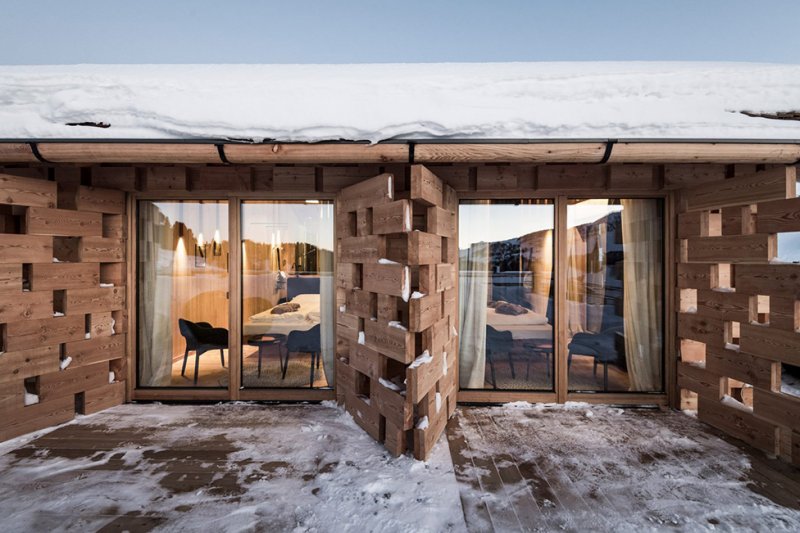 Cемь новых альпийских шале построены по проекту студии Noa* network of architecture на курорте Zallinger на севере Италии. Расположенный в труднодоступной местности, на одном из главных горнолыжных склонов района, хутор, когда-то в XIX веке, состоял из церкви, альпийского шале и многочисленных сараев. Архитекторы видели в этом проекте еще одну возможность «вернуться к истокам». Они обогатили место семью новыми шале и оздоровительным центром, а также обновили саму гостиничную структуру. Во всем ими двигала идея «ретрита» — убежища от городской жизни. Структура и внешний вид новых зданий берет в истории места. Новые шале соответствуют первоначальному плану сараев на участке. В них использованы традиционные южно-тирольские технологии, такие как деревянная черепица. Фасады построены из сложенных деревянных бревен и напоминают амбары. По словам проектировщиков, деревенский вид этих конструкций «позволяет внутренним деталям сливаться с внешним образом». Новые здания шале расположены попарно, в них — по четыре новых комнаты в каждом. Каждый из них опирается на бетонный фундамент. Внутри, выложенные деревом стены спроектированы так, чтобы создать уютную атмосферу охотничьего домика. Интерьер главного дома, в центре курорта Zallinger, был полностью перестроен, чтобы создать, как для гостей отеля, так и для всех местных лыжников, лаунж и ресторан с гигантским баром, сложенный из еловых стволов. Деревянная обшивка покрывает стены и потолок, за которым находятся звукопоглощающие панели. Эффект также достигается за счет использования войлочного пола, традиционного альпийского материала.