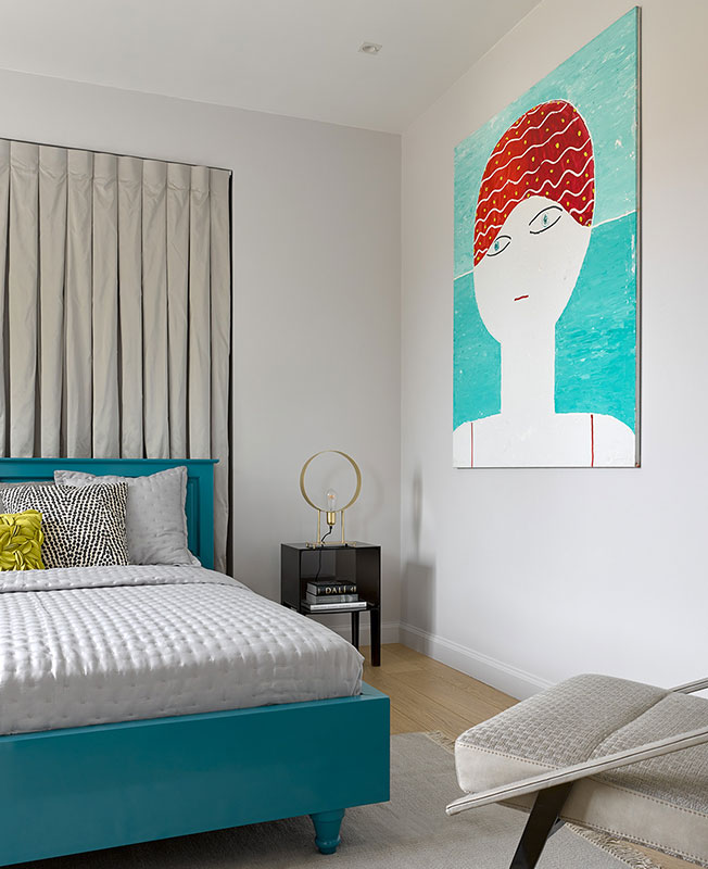 Фрагмент хозяйской спальни. Комод, Roche Bobois. Настольная лампа, Any Home. Картина, Петр Бронфин, галерея Dio Art.