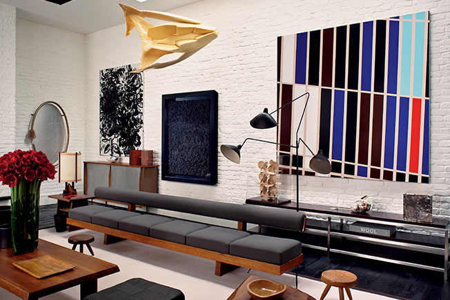 В модных интерьерах самой надежной парой суперсовременному искусству выступает модернистская мебель ХХ века. Даже Мешиш, ценитель исторических стилей, последовал этому канону. Его выбор: светильник Сержа Муя, кресла Пьера Полена, стулья Поула Кьерхольма, грубые столы Джорджа Накашимы, ансамбль французского венгра Матье Матего.