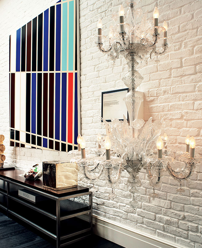Каждый галерист знает: что ни поставишь в пустое помещение с белыми стенами и бетонным полом, — все будет выглядеть как произведение искусства. Стены в доме однородны — исторический кирпич XVIII века, ухоженный, отреставрированный и выбеленный. Выглядит как стены арт-галерей. Но жилой дом не музей. Например, полы тонированы в темный цвет и во многих комнатах застелены коврами.