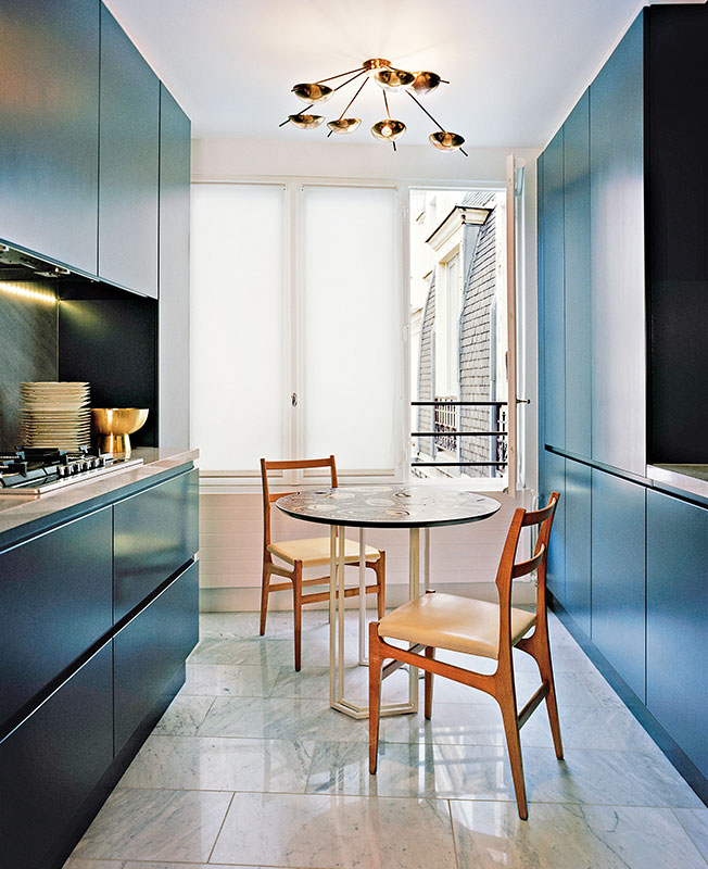 Дуэт Dimore Studio часть времени проводит здесь, в 250-метровой квартире в доме середины XIX века. Бритт и Эмилио выбрали район вокруг самого старого аббатства Парижа, памятника романской архитектуры на левом берегу Сены. Здесь преобладает классическая застройка с огромными подъездами, широкими лестницами и высокими мансардными крышами. Удачно была найдена квартира на верхнем этаже, откуда открывается изумительный панорамный вид на город.