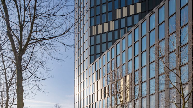 Отель расположен в 21-этажном здании, построенном по всем правилам устойчивого дизайна: из переработанного бетона, с собственной системой очистки воды, облицованном 1600 алюминиевыми панелями, которые реагируют на изменение внутренней температуры. В оранжерее на крыше растет 70 видов трав, здесь занимаются огородом и даже разводят рыбу.