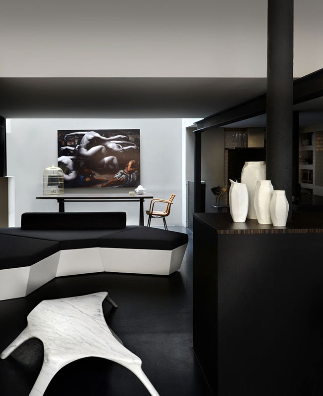 Армель Сойе создала уникальное пространство. Весь интерьер построен исключительно на авторских предметах из коллекции Galerie Armel Soyer.
