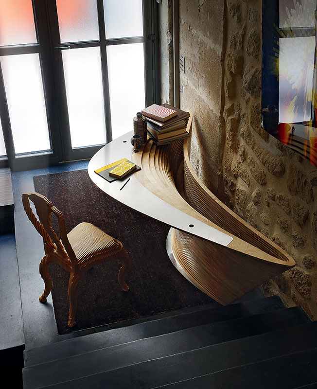 Письменный стол Contourted Crater, диз. Ифенаи Оганву, стул Сlone, диз. Джулиан Мэйор.