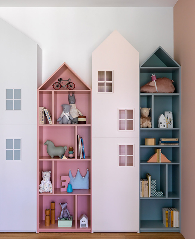 Стеллажи изготовлены на заказ по чертежам дизайнеров в Wood&Interiors. Мягкие игрушки Moonsters Store. Аксессуары Moon Store.