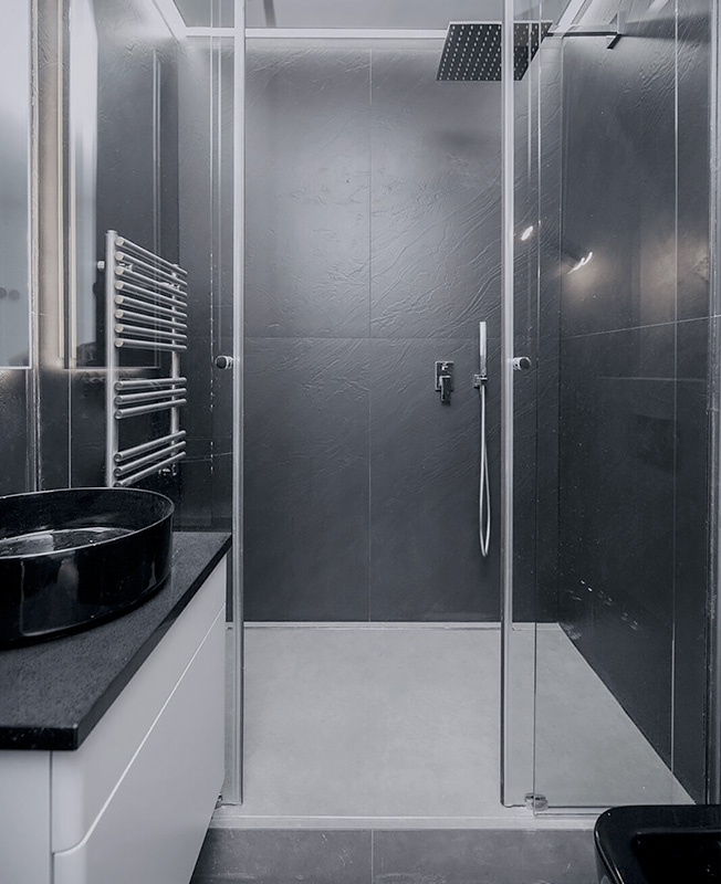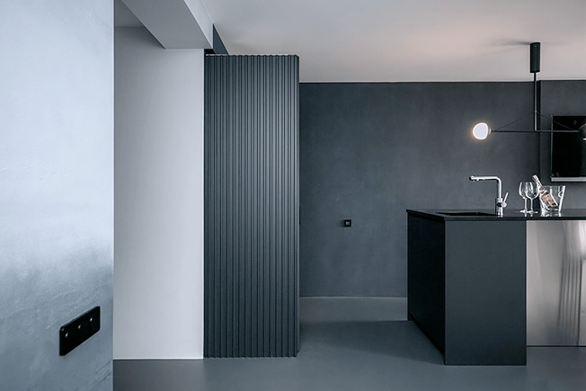 Екатерина Рулинская и Алексей Кораблев, архитектурное бюро Zrobym architects, представили проект квартиры в серых тонах в Минске. Он носит название Midnight Flat.