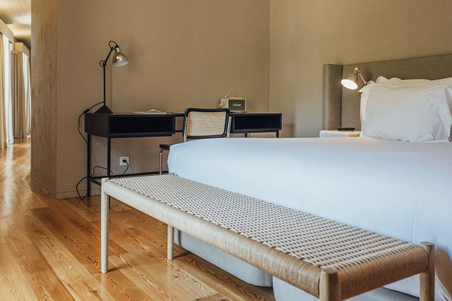 С наступлением вечера теплые, почти скандинавские интерьеры в серых и сланцевых оттенках, светлые деревянные полы и строгая мебель лиссабонского дизайнера Кристины Хорхе де Карвальо превращают комнаты в тихое, стильное и уединенное место.