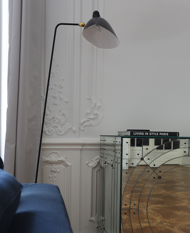 Cветильник Сержа Муя — графичный акцент на фоне белых стен. Комод Arte Veneziana.