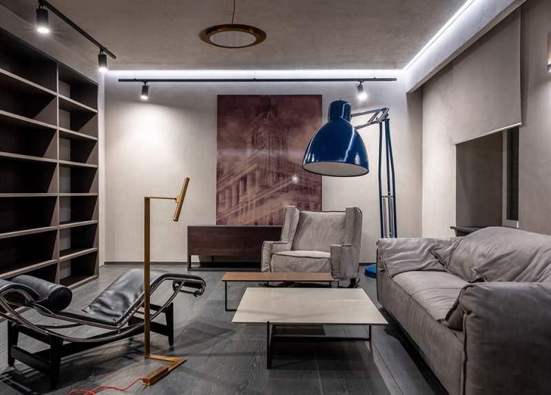 Мебель выбрали от лучших европейских брендов — Poltrona Frau, Baxter, B&B Italia и других. Эти марки прочно ассоциируются с люксом и продуманной эргономикой. Кожаные обивки кресел и диванов подчеркивают статус интерьера. Дополняют обстановку светильники Henge, Flos, Vibia — технический свет сочетается с яркими дизайнерскими