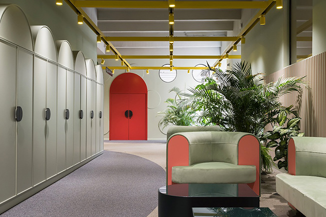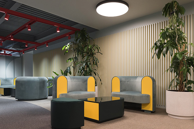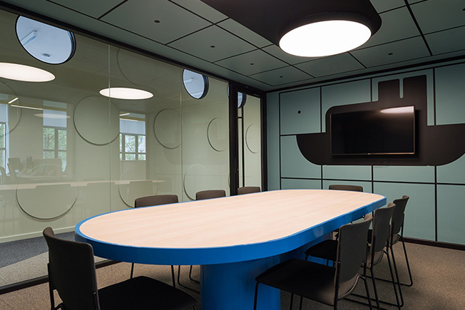Идея игрового поля отразилась и в переговорных: популярные игры — нарды, крестики-нолики и пинбол — превратились в рисунки и паттерны, определившие название и характер каждого пространства. Специально для лаундж-зон разработана серия мебели: предметы одновременно напоминают разрезанные лакомства и увеличенные игрушки.