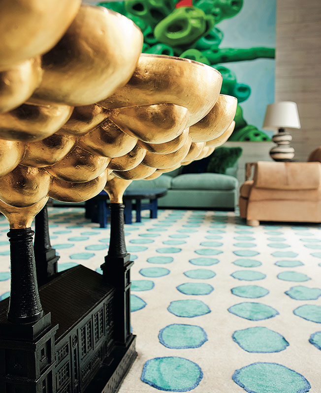 Как и Марино, де Биаси не использует предметов массового производства, ищет limited edition. Если не находит подходящего, изготавливает по своим чертежам. Примечательно, что в американском проекте доминируют европейские имена. И какие! Клод Лаланн, Жак-Эмиль Рульман, Мария Пергей, Пьер Шарпен и Алессандро Мендини. Особая любовь — голландский дизайн. Здесь сразу три предмета дуэта Studio Job из серии Robber Baron, выпущенной ограниченным тиражом.