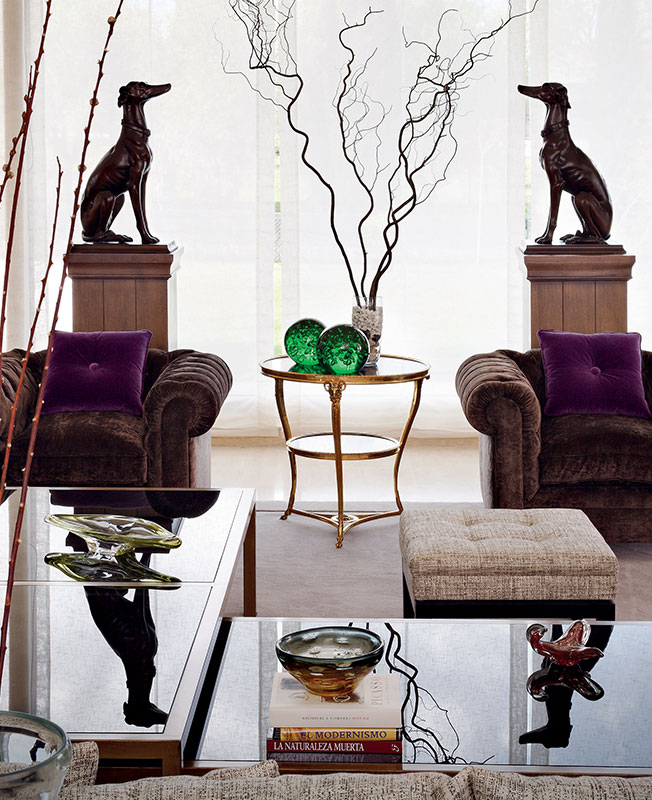 Гостиная. Парные скульптуры собак и декоративные ветки — эффектные детали из магазина Reforma, которым владеет дизайнер Х. Кастилья.