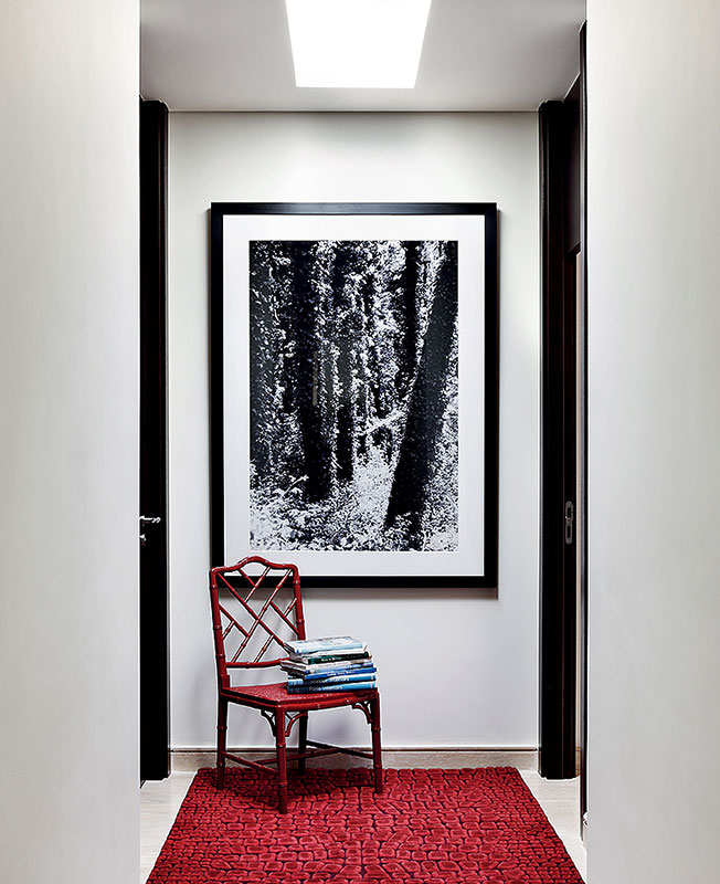 Прихожая. Фотография Р. Помбо и стул из бамбука, покрытого красным лаком, Аnmoder.