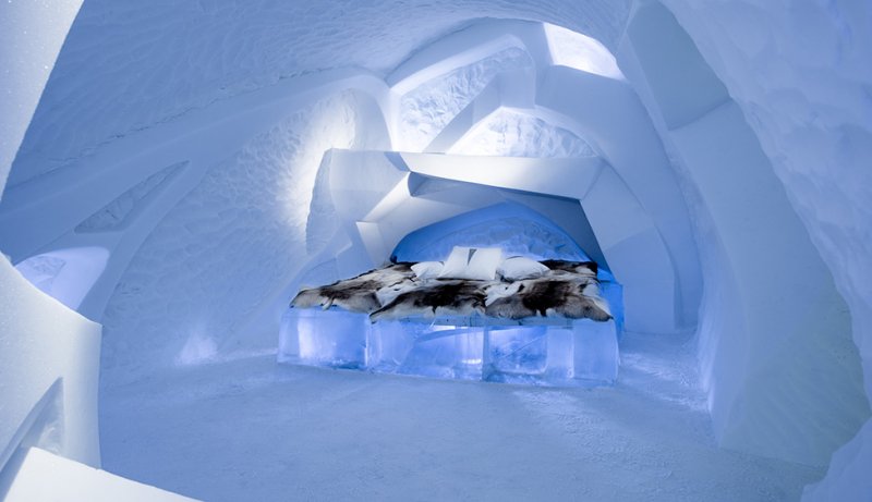 Один из самых необычных отелей в мире Ice Hotel в шведской деревне Юккасъярви открыл сезон. Всё в нем, включая стаканы и кровати, состоит из снега и льда, а температура составляет минус 5 градусов по Цельсию.