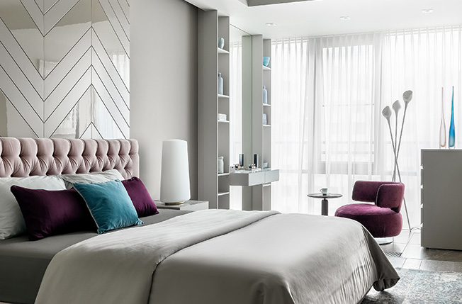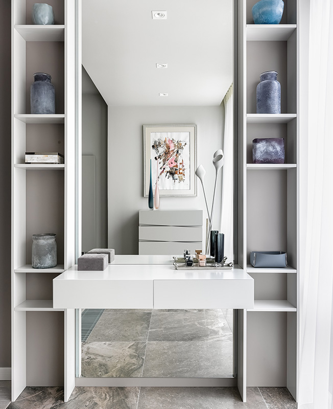 Главная спальня. Туалетный столик с зеркалом: индивидуальное изготовление. Комод Presotto. Вазы: Moon Stores, Happy Collections.