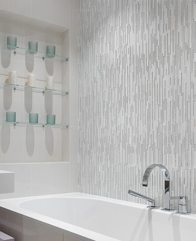 Основной санузел. Ванна и настенная плитка Villeroy&Boch. Мозаика Dune. Смесители Dornbracht.