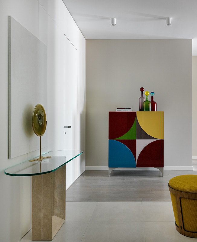Это был именно тот случай, когда история началась с одного предмета мебели — яркого, харизматичного комода от Roche Bobois, который очень понравился хозяйке квартиры. Он и задал основное настроение, дав мне понять, что монохрома в этом проекте не будет.
