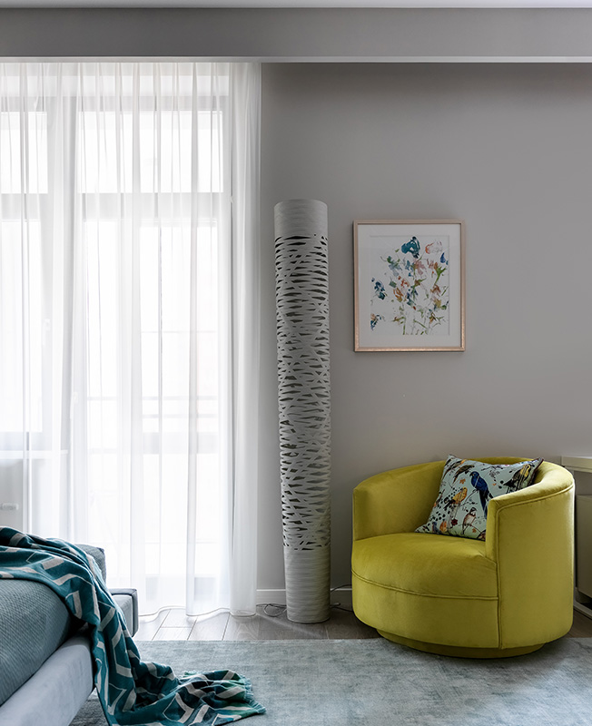 Основным запросом был наполненный светом и воздухом «сочный» интерьер. К моему удовольствию, заказчики любили цвет и не боялись его! В описании своих ощущений они часто использовали слова «лимонный» и «солнечный», поэтому в интерьере я применила разнообразные оттенки желтого, наполняя его радостью и теплом. Проект я назвала «Интерьер с ароматом лимона».