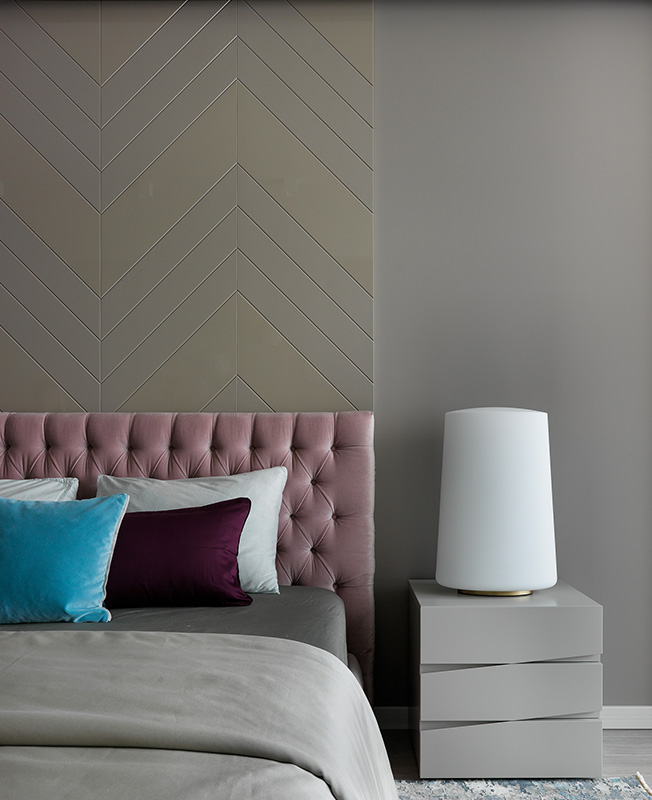По проекту застройщика в главной спальне была лоджия, комната выглядела тесной и темной. Чтобы увеличить площадь и улучшить инсоляцию, мы объединили ее с основным объемом, получив тем самым две функциональные зоны.