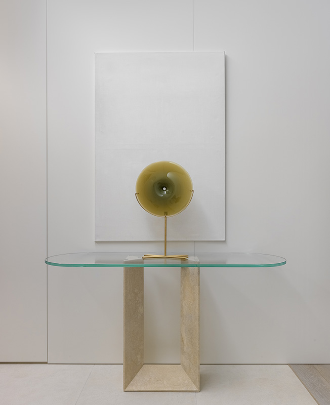 Прихожая. Консоль Cattelan Italia. Стеклянная скульптура Sklo. На полу керамогранит Atlas Concorde.