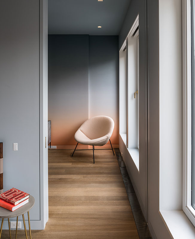 Ключевой элемент — инсталляция художницы Сары Оппенхаймер. «Сара — мой друг, я с ней давно хотел поработать, и вот настал момент, — рассказывает Майкл Чен. — Она создала тщательно продуманное произведение искусства, которое мы даже представить себе не могли. Нам было очень важно встроить инсталляцию в «тело» дома, чтобы она осталась там навсегда, как его неотъемлемая часть. У нас получился очень красивый союз искусства и архитектуры, делающий пространство уникальным».
