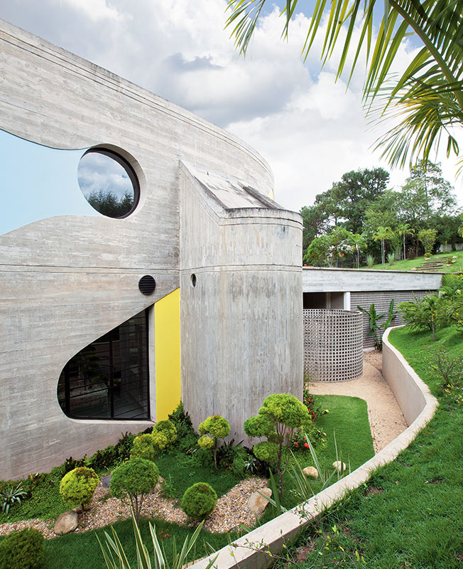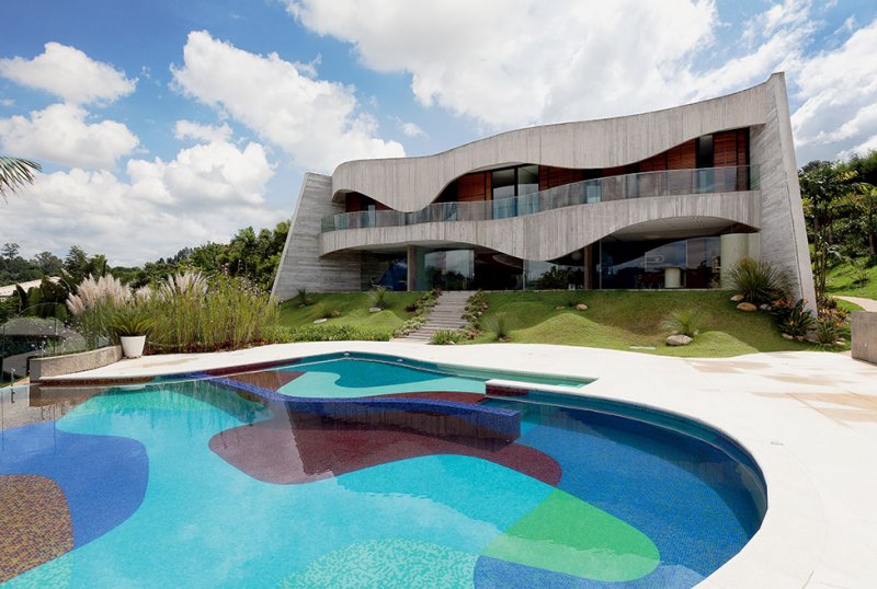 С первого взгляда очевидно: эту виллу построил бразильский архитектор Руи Отаке. Невероятная пластика голого бетона в сочетании с ярким цветом — Отаке ни с кем не спутаешь.