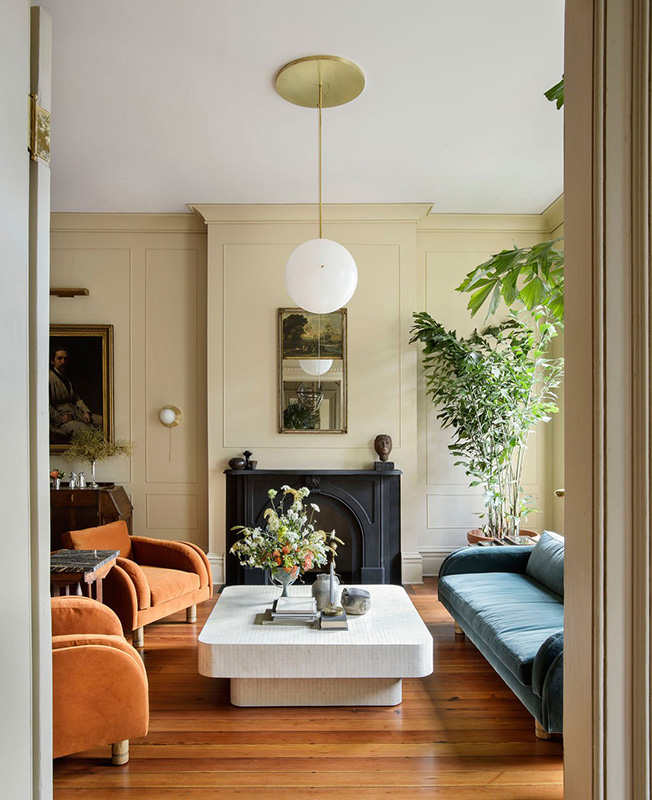 Комнаты окрашены в медовые оттенки (краска Farrow & Ball), декорированы светильниками из латуни и изготовленной на заказ мебелью, спроектированной парой. При доме есть собственный каретный сарай, которым Роберт и Стефани займутся чуть позже. Ни одному из них не нравится идея «мгновенного жилья» — всегда лучше иметь дом, которым можно с удовольствием заниматься в течение определенного времени.