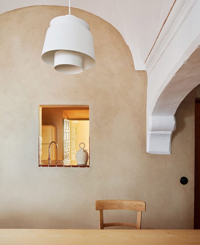 Мадридская студия Lucas y Hernandez-Gil провела капитальный ремонт частного пансиона в винодельческом городке Виллалба де лос Баррос, в испанском регионе Эстремадура. Здание XVIII века cтоит на главной площади города. Чтобы сохранить структурную оболочку исторической постройки, студия просто освежила существующие стены и побелила высокие сводчатые потолки. Местным гончарам было поручено создать покрытие для пола, заменив старое, не подлежащую ремонту. Блестящие темно-красные плитки, имитирующие цвет естественного ландшафта города, были нанесены на нижнюю часть стен в гостиной и над плитой в кухне. Несколько оригинальных деревянных дверей, богато декорированные узорами, окрашены в бледно-зеленый цвет с тонким отсылом к виноградникам региона. Пара новых дверных проемов была создана, чтобы дать гостям лучший доступ во внутренний двор с плавательным бассейном, который облицован той же глиняной плиткой, что и пол. Маленькие квадратные проемы, превращены в ниши и акцентированы на нескольких внутренних стенах дома, чтобы пропускать больше света. Второй этаж дома, который ранее использовался в качестве кладовой и хранилища, был полностью перестроен для размещения гостей в четырех спальнях. Каждая спальня обставлена простой мебелью.