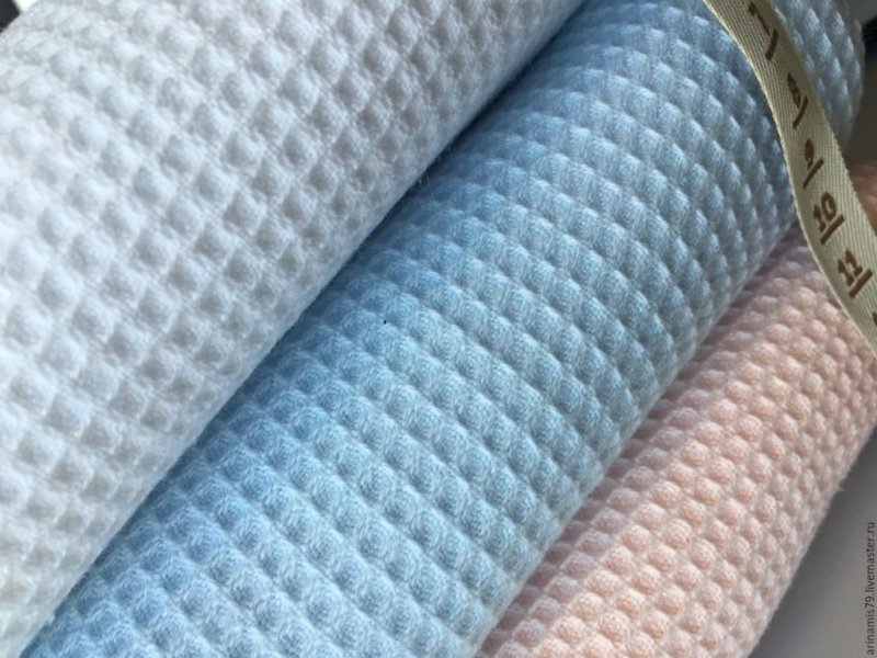 Ткань, из которой изготавливают полотно, имеет ячеистую структуру и схожа с вафлей именно по этой причине и получило такое название. А чем ячеек у полотна больше, тем сам материал уступает по плотности.