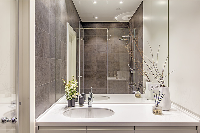 Ванная комната. Оборудование Villeroy&Boch, Hansgrohe. Отделка: керамогранит Porcelanosa.