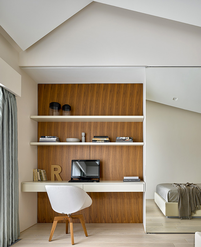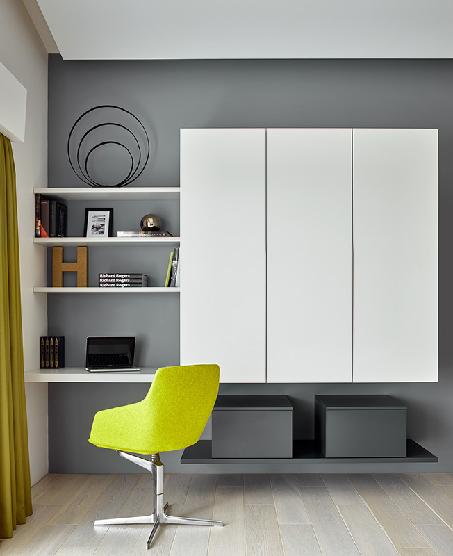 Одна из гостевых спален. Cтул в обивке из фетра Arper, шкаф изготовлен на заказ в столярной мастерской.