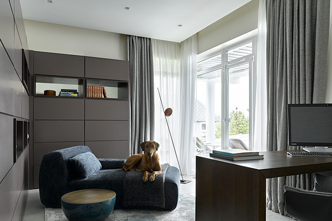 Заказчики — взрослая семейная пара, разносторонние люди с хорошим вкусом. Мы разговаривали на одном языке. У них два сына, которые иногда приезжают в гости со своими семьями. Также в доме проживают две собаки породы родзийский риджбек — поэтому практичность материалов была важным критерием для хозяев.