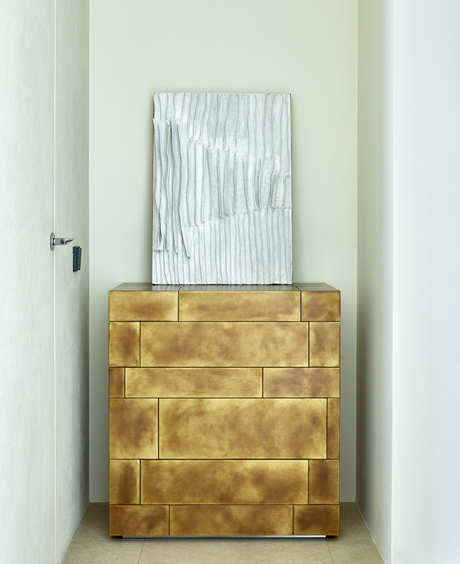 Фрагмент главной спальни. Комод из меди De Castelli, на нем работа Ирины Маркман.