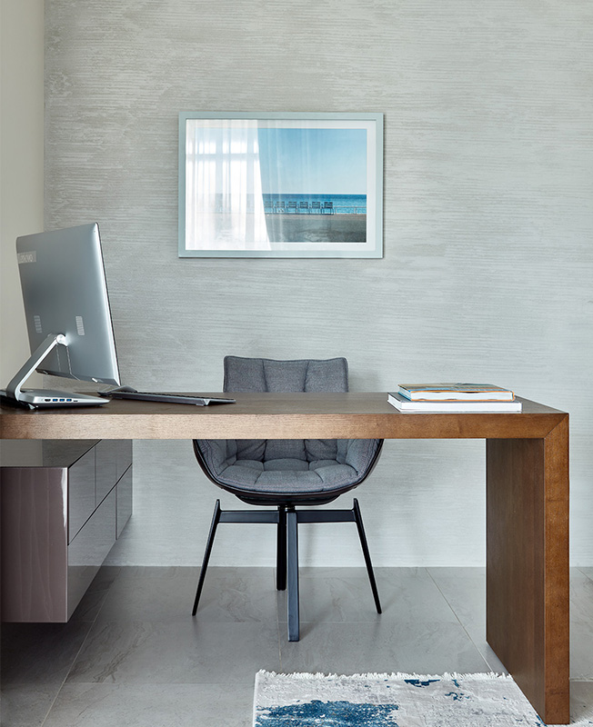Кабинет. Письменный стол изготовлен на заказ. Кресло Husk — модель дизайна Патрисии Уркиолы для B&B Italia.