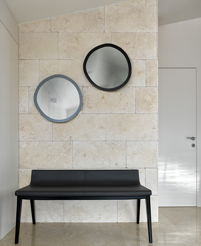 Одна из стен в холле отделана натуральным травертином Petra Antiqua.
