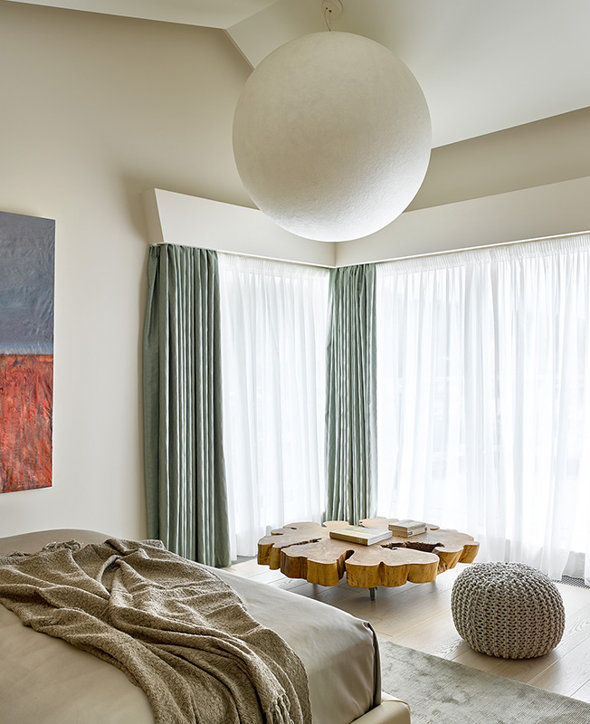 На первой встрече заказчик озвучил нам пожелание: «Хочу повысить качество жизни». И мы решили поставленную задачу. Находясь в этом пространстве, ощущаешь: ты дома. Мягкая, располагающая атмосфера позволяет сразу же переключиться с городского ритма на отдых».