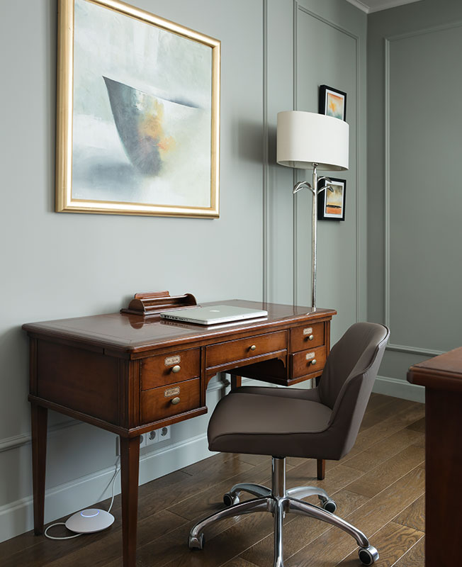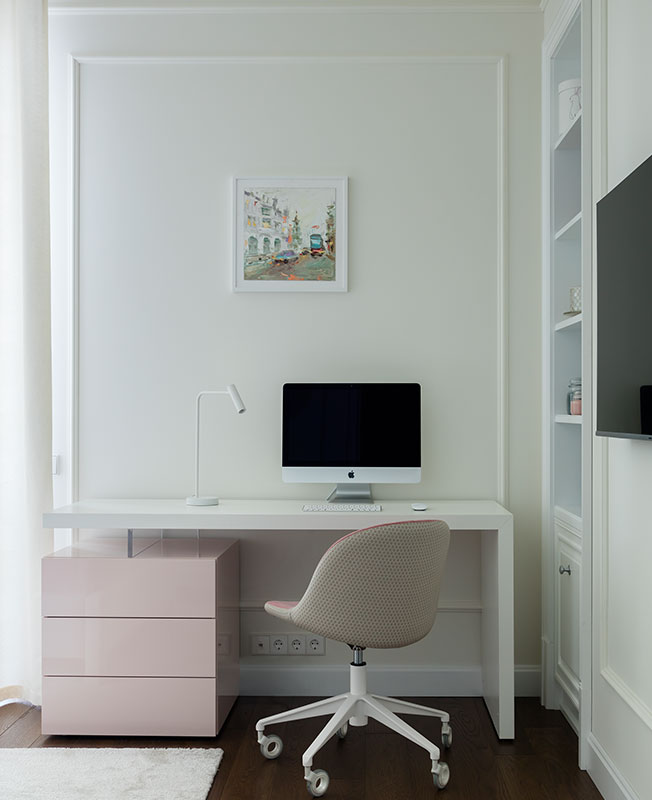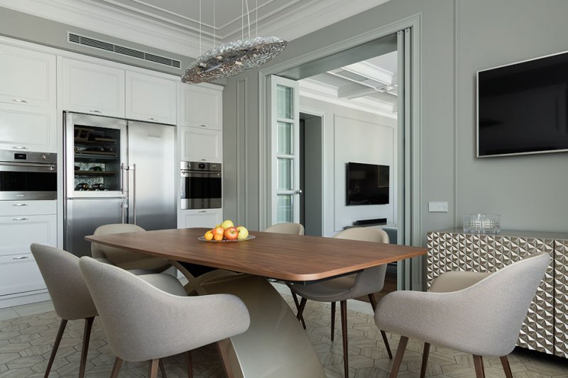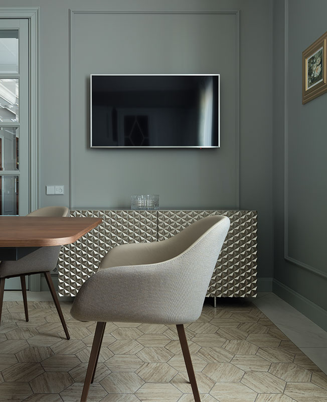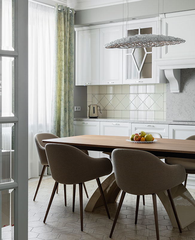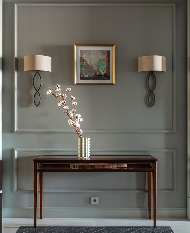 «Мы стараемся делать вневременные интерьеры, на которые не поставишь штамп «сделано в 2018». По концепции заказчики отдавали предпочтение спокойному классическому интерьеру с современными элементами. Мы хотели создать некую нейтральную канву, в которую легко можно внести изменения простыми средствами и в кратчайшие сроки, не ввязываясь в капитальный ремонт».