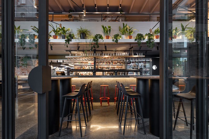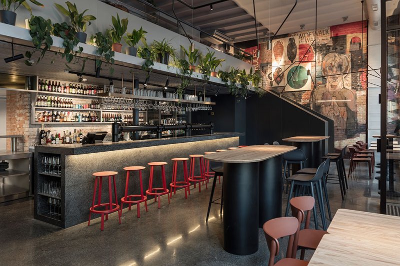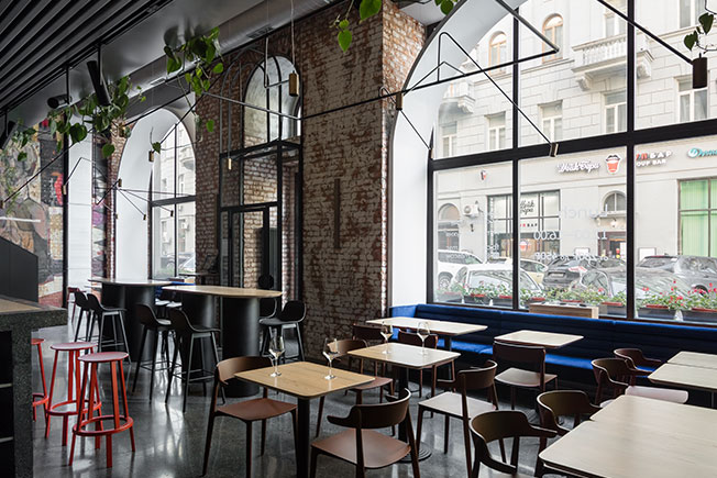Tyler — это авторская кухня, разнообразная винная карта и множество сортов пива. Архитекторам досталась непростая задача, ведь по сути заказчики хотели разместить два заведения в одном.
