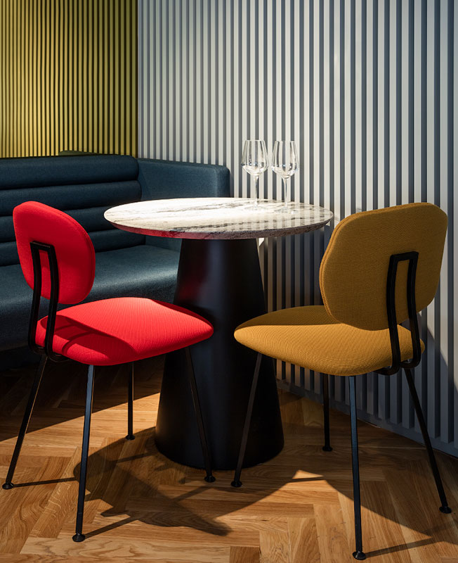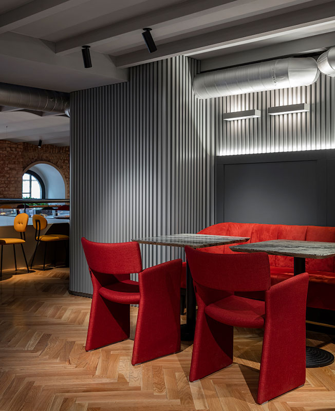 Особый акцент был отдан комфортабельной и удобной мебели от скандинавских и голландских производителей Lensvelt, Normann Copenhagen, Mass Productions, Hay и др.