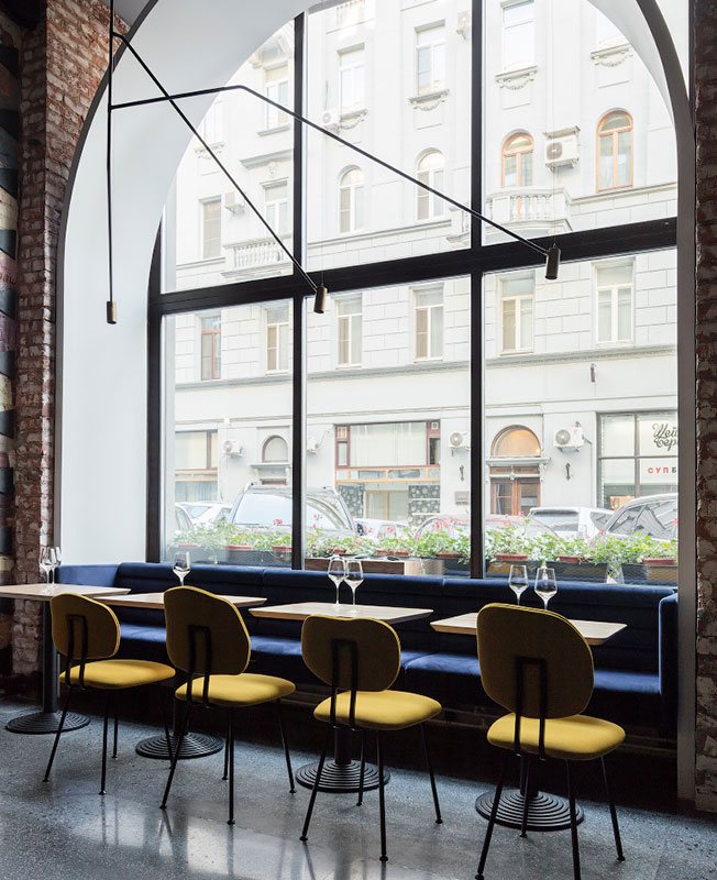 Подчеркнуть высоту и объем окон решили с помощью арок, которые подсвечиваются в вечернее время и служат точкой притяжения посетителей с улицы.