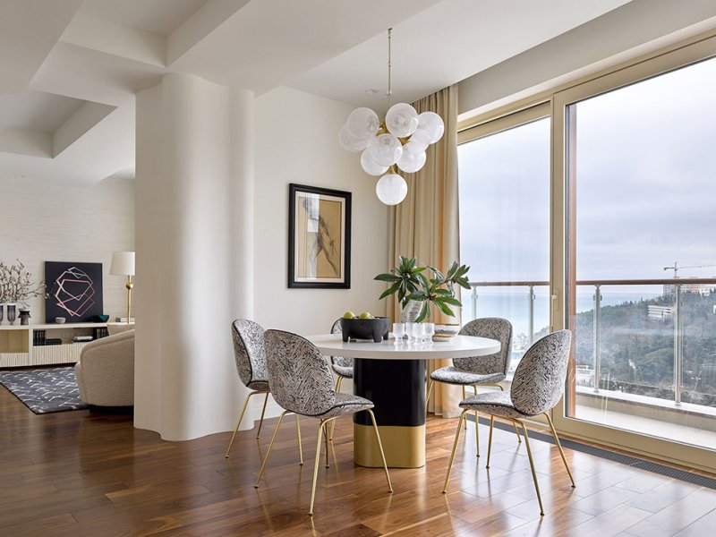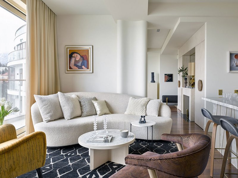 Наталья Попова и Дарья Синотто создали в геометрически сложном пространстве утонченный интерьер с природными формами и палитрой, повторяющими живописный вид из окна на море.
