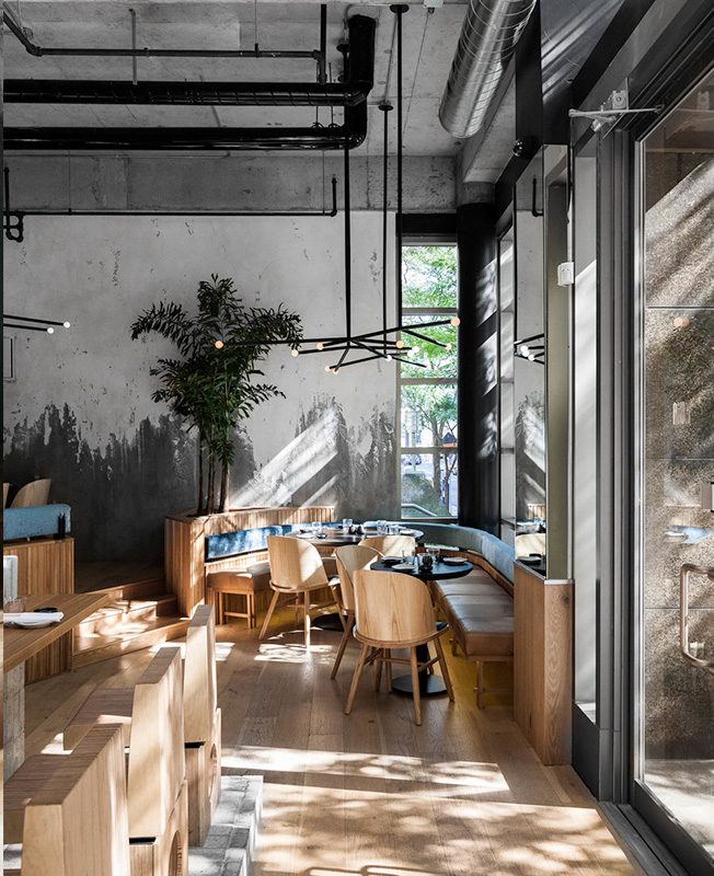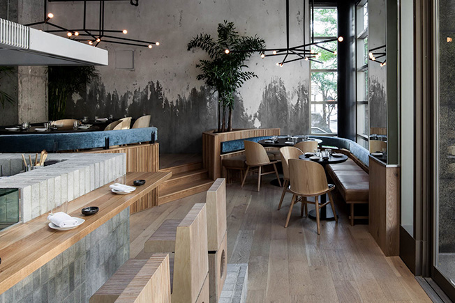 Ryu — это японская сеть ресторанов, которая открылась в Монреале. Дизайнеры MRDK отдали предпочтение натуральным материалам ручной работы, которые с возрастом будут только улучшать свое визуальное качество.