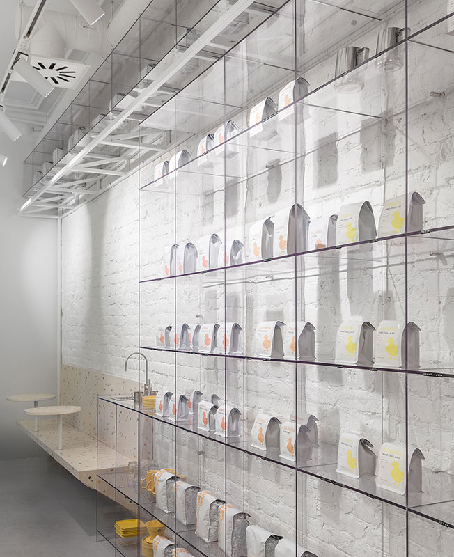 На компактной площади всего 43 кв. метра удалось создать по-настоящему многофункциональное пространство. Авторы проекта смогли разместить магазин, кафе и место для проведения каппингов (профессиональная дегустация кофе).